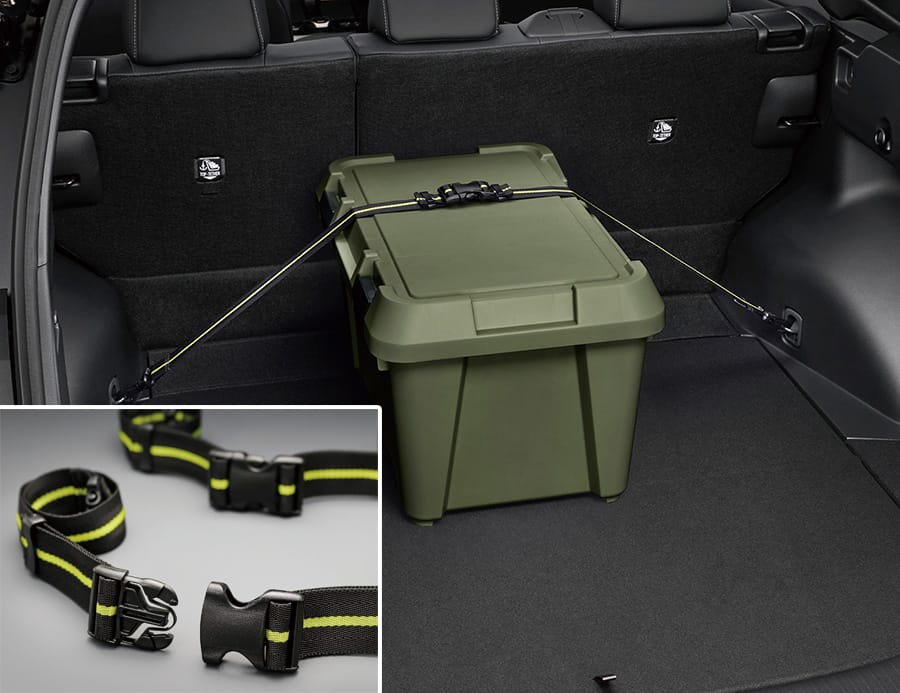 ・荷物を固定するラゲージフック(4個*6)やエコバッグを掛けるお買い物フック(4個*6)に加え、バックドア側からのリヤシートの可倒操作を可能にする遠隔操作レバー(2個*6)も設定。荷物の形や大きさに応じた使い方ができるよう使い勝手にも配慮