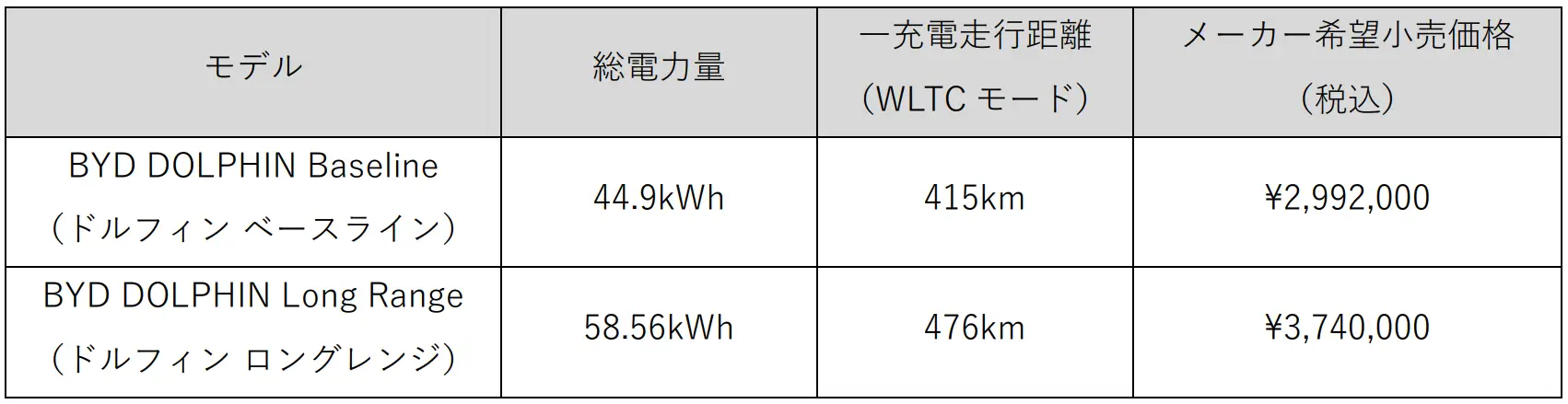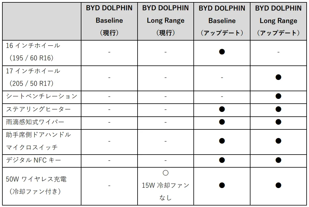BYD Auto Japan株式会社(本社:神奈川県横浜市、代表取締役社長:東福寺 厚樹、略称:BAJ)は、BYDが日本国内で販売する5モデルの中でもっとも小さい電気自動車となる「BYD DOLPHIN(ビーワイディー ドルフィン)」の一部装備をアップデートし、2026年2月10日(火)より全国のBYD正規ディーラーで販売を開始いたします。