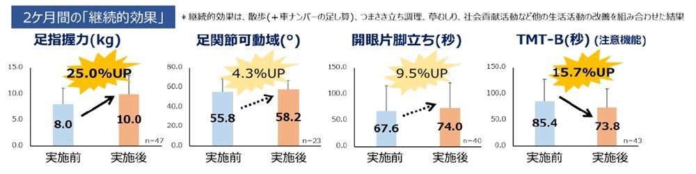 足指握力が25.0%、TMT-B(注意機能)が15.7%向上