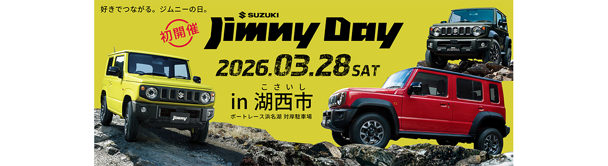 スズキ株式会社は、お客様との接点を創出し、新たな体験と楽しみを提供することで満足度の向上を図ることを目的に、ジムニーユーザー向けイベント「SUZUKI Jimny Day in 湖西市」を、2026年3月28日(土)にボートレース浜名湖 対岸駐車場(静岡県湖西市新居町)にて開催します。