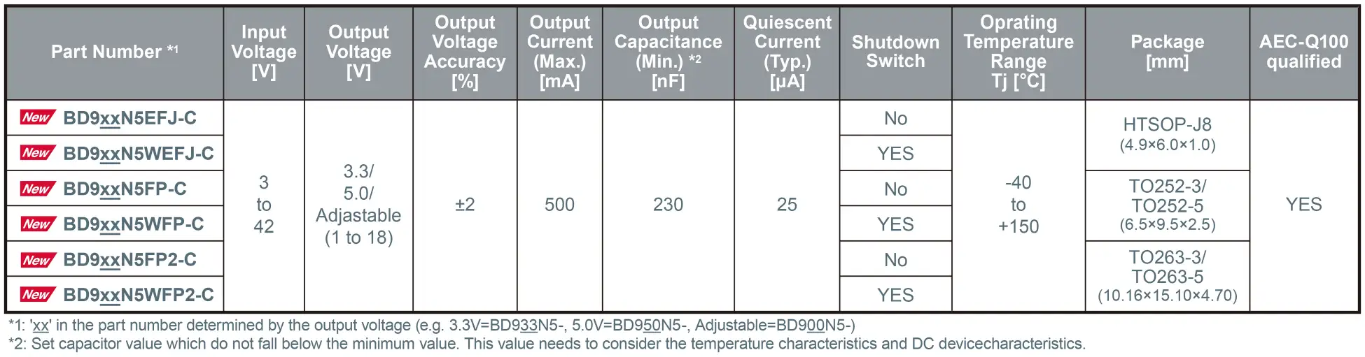 500mA対応LDOレギュレータ ラインアップ |