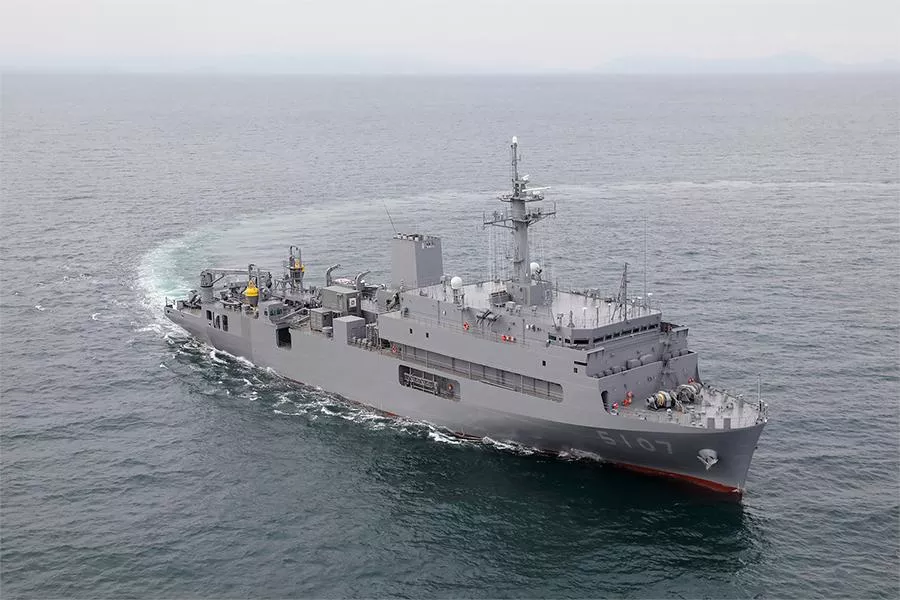 防衛省向け海洋観測艦「あかし」の引渡式、三菱造船が下関で実施【三菱重工業】
