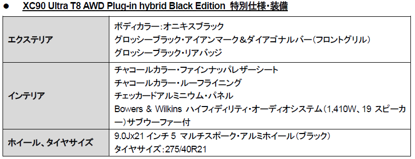 ボルボ・カー・ジャパン株式会社は、特別限定車XC90 Ultra T8 AWD Plug-in hybrid Black Editionを70台限定で、本日より発売開始します。