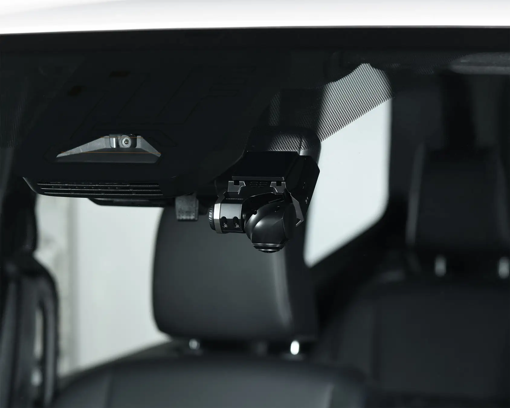 360°カメラで前方だけでなく、側方・車内の映像も記録可能。