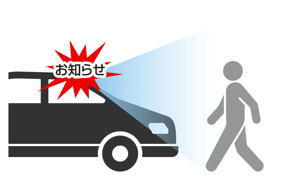 低速走行中や停車中に車両前方の歩行者を映像で認識し、お知らせします。