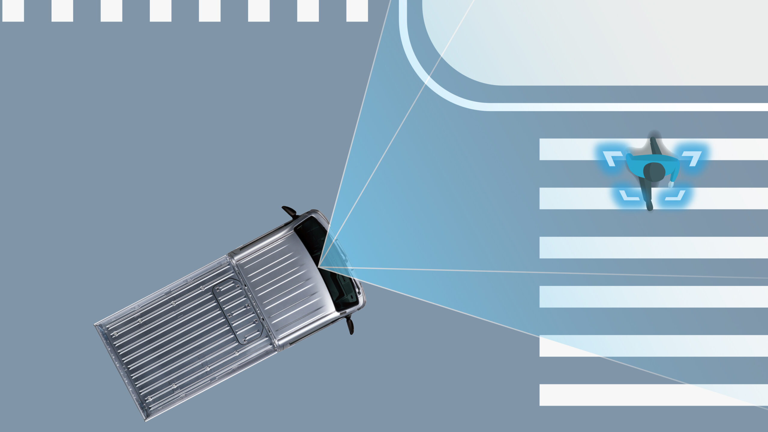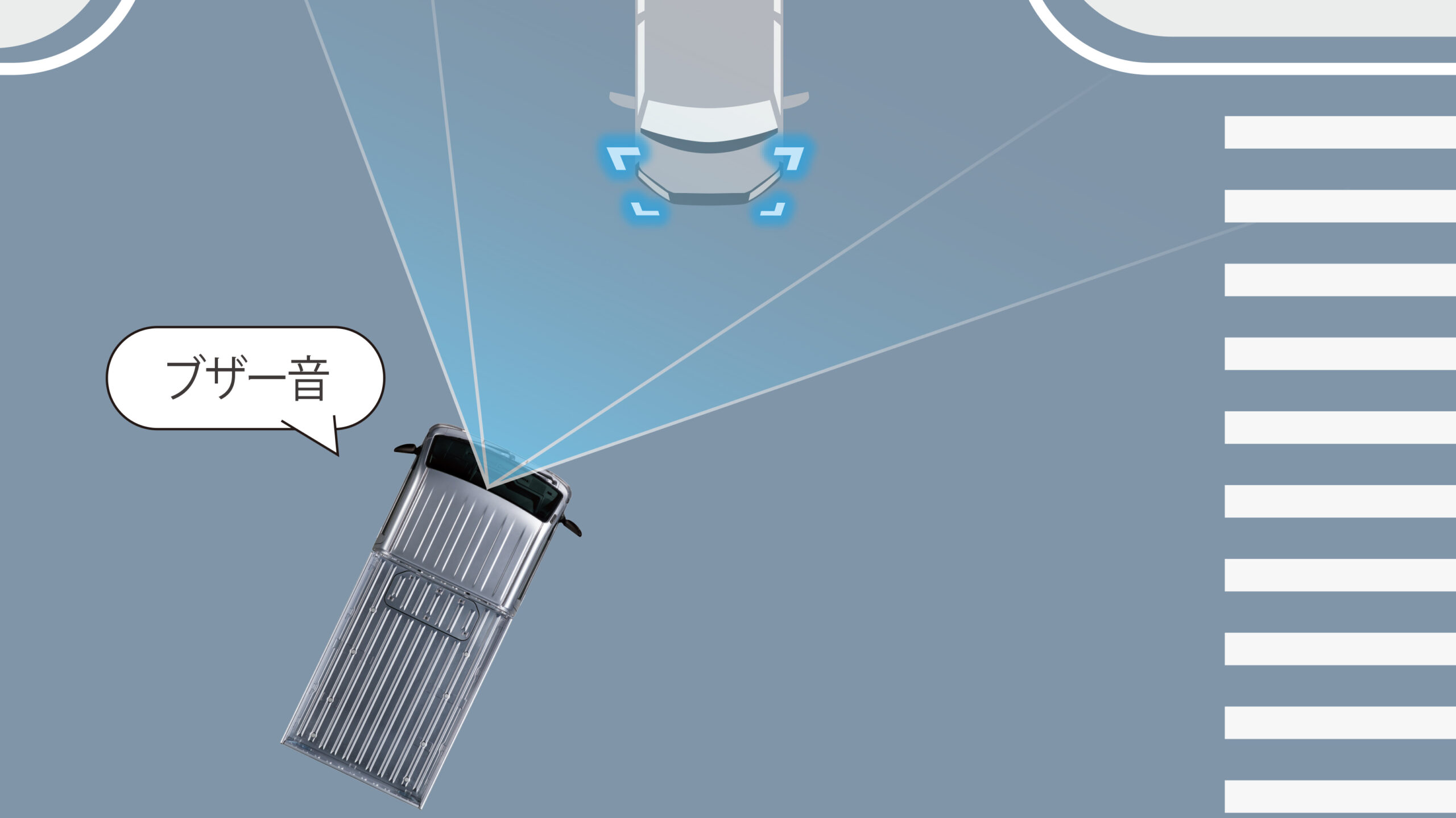 交差点右左折時の対向方向から来る横断歩行者検知機能(作動イメージ) |