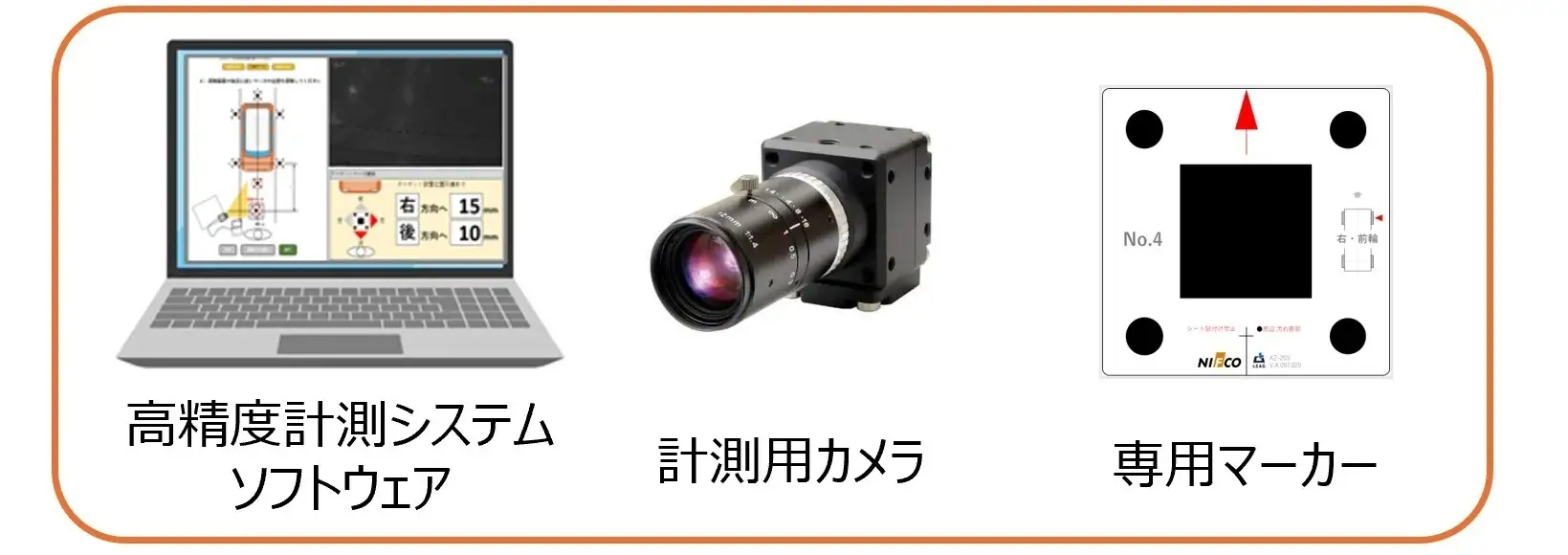 このたびニフコは、自動車整備におけるエーミング作業の「ターゲット位置出し」を、簡単に一人で短時間かつ高精度に行える新システム「SoloSet™」を開発し、商品化いたしました。「SoloSet™」は、専用マーカー・計測用カメラ・高精度計測システムソフトウェアの3つの主要構成要素を組み合わせることで、高い再現性と精度を両立した位置計測を実現するものです。これにより、従来二人作業で長時間を要していた位置出し作業を、一人で短時間かつ高精度に完了できるようになり、作業精度の向上・省人化・業務効率化の面において大幅な改善効果※ が見込まれます。本システムは、リーグソリューションズ株式会社(本社:千葉県柏市、代表取締役社長:大森 能成)の持つ高精度マーカー計測技術を活用し共同開発したものです。