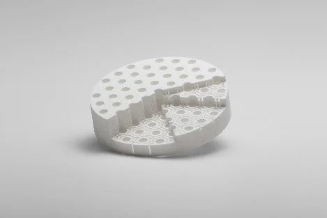 樹脂バインダーを使用しないため、脱脂工程が不要なうえ、焼成時のサイズ収縮が約2%未満まで抑えられます。厚肉形状や複雑な内部構造でも安定した焼成が可能です。そのため、従来のセラミックス3Dプリンティングと比べて高精度かつリードタイムを短縮できます。