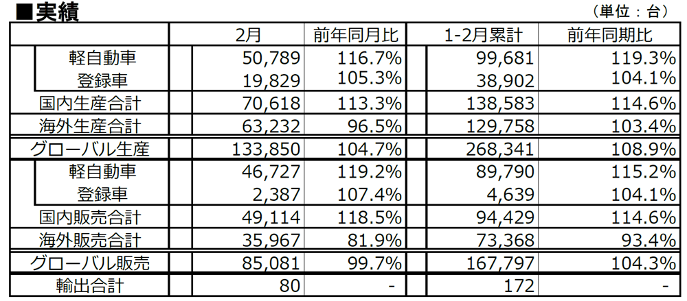 2026年2月 生産・販売・輸出実績【ダイハツ工業】
