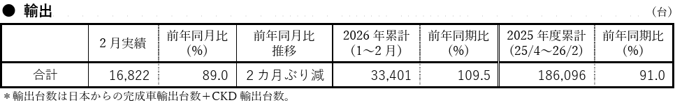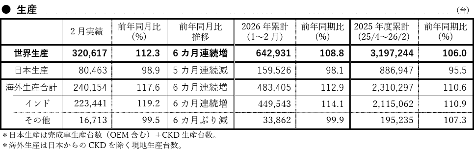 ・海外生産:2月として過去最高となったインドの増加などが牽引し、海外生産は2月として過去最高となった。