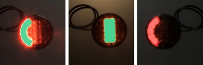 テストベンチ上で作動中のマルチチャンバーランプ:左のライトはOK、中央のライトはOK、右のライトはNOK |