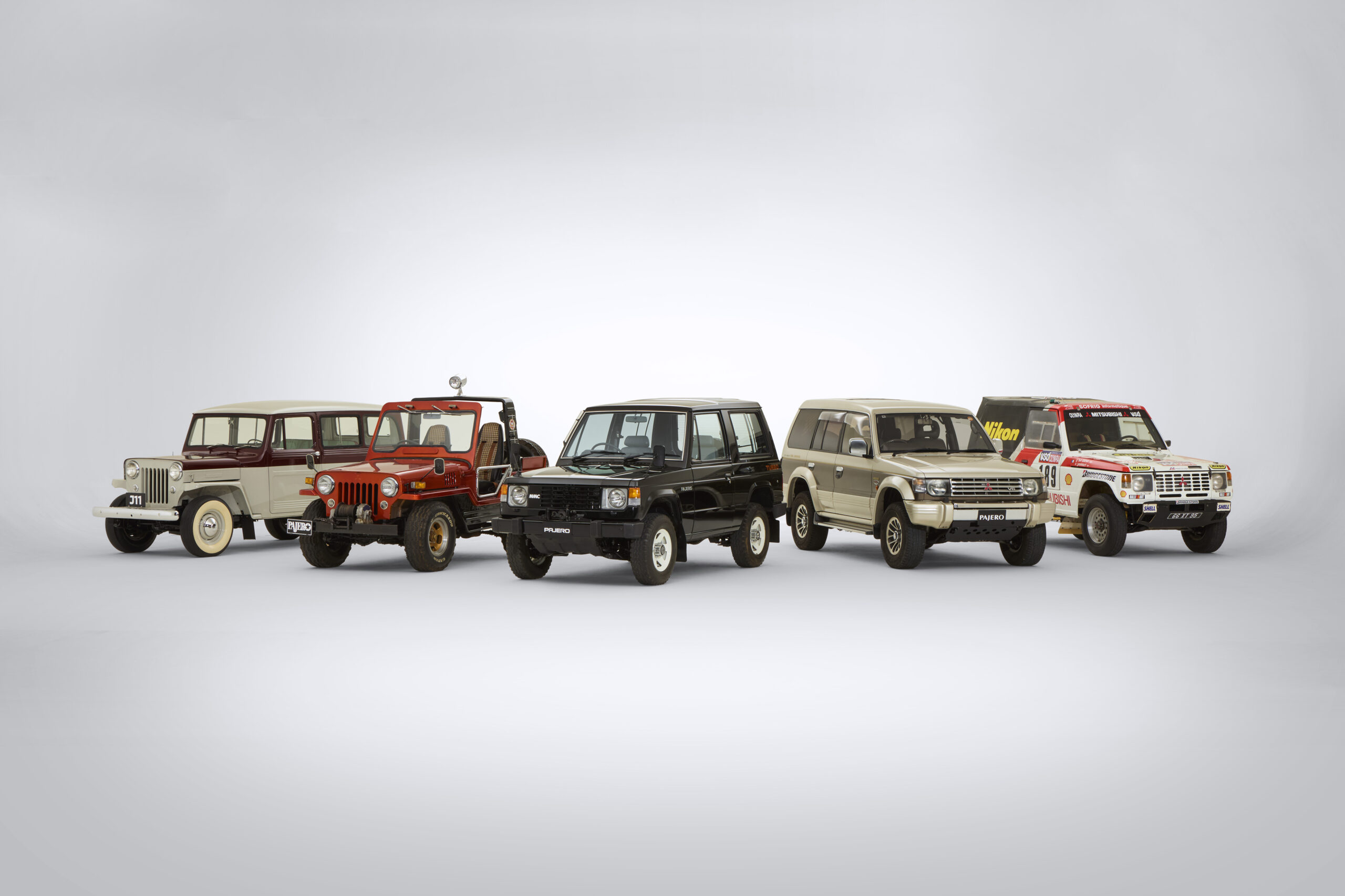 三菱自動車ブースでは、クロスカントリー4WDの走破性と乗用車並みの快適性を両立した、1980年代当時としては画期的な商品であった『パジェロ』の初代モデルと2代目モデルのほか、『パジェロ』の礎的な存在であった『J11デリバリ・ワゴン』、『パジェロ』のコンセプトカーである『パジェロⅠ』、初代『パジェロ』のダカールラリー優勝車の5台を展示します。展示車の概要は以下の通りです。