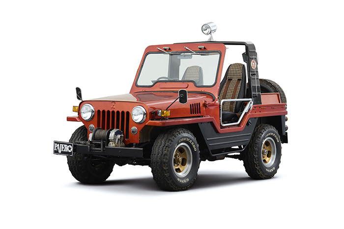 乗用車感覚で使いこなせる新しい4WDとして発売した、本格オフロード・レクリエーショナル・ビークル(RV)。卓越したオフロード性能と乗用車並みの扱いやすさの両立という『パジェロ』の特長を確立した。ショートボディのメタルトップとキャンバストップを展開し、1983年にはロングボディを追加投入した。ディーゼルとガソリンエンジンを設定し、展示車は2.4Lディーゼルエンジンを搭載。 |