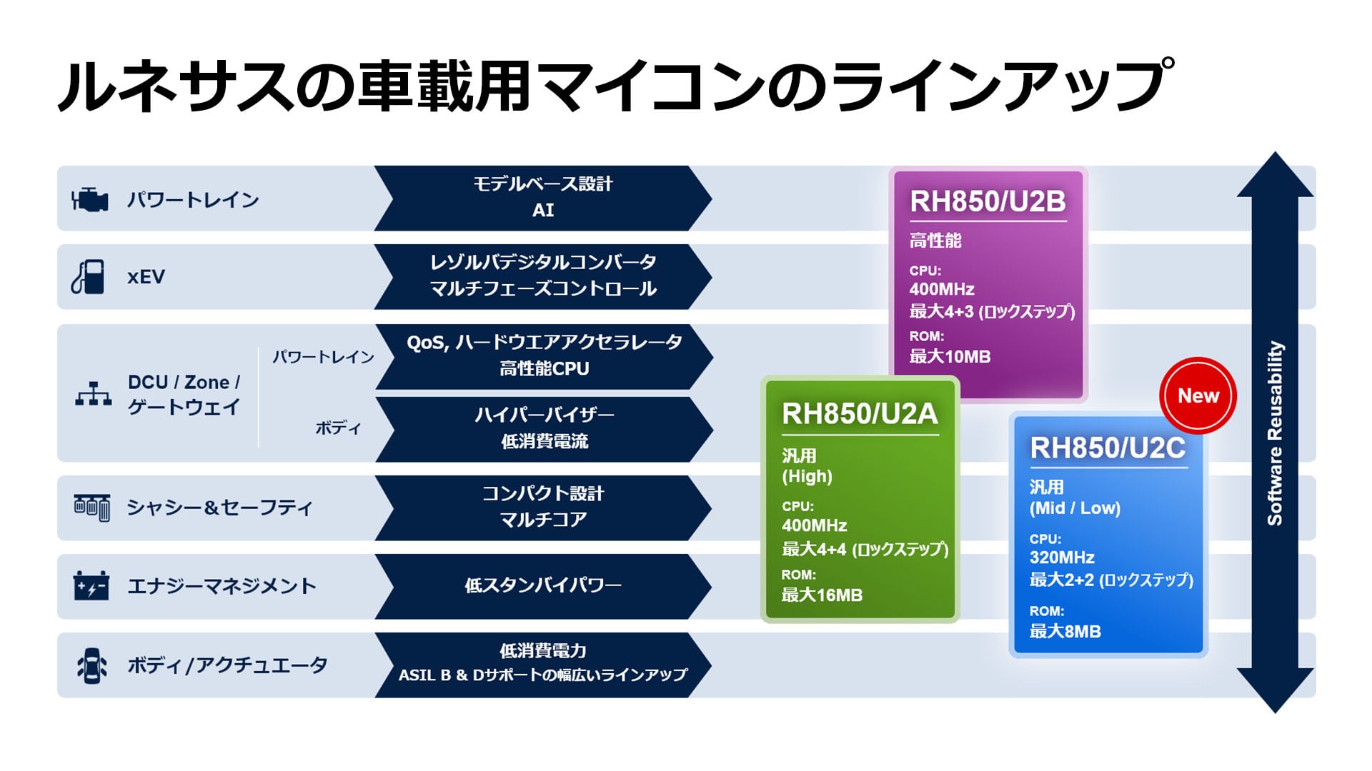 28nm車載用マイコンRH850ファミリを拡充し、ボディ制御やシャシー、セーフティ用途向け「RH850/U2C」を発売