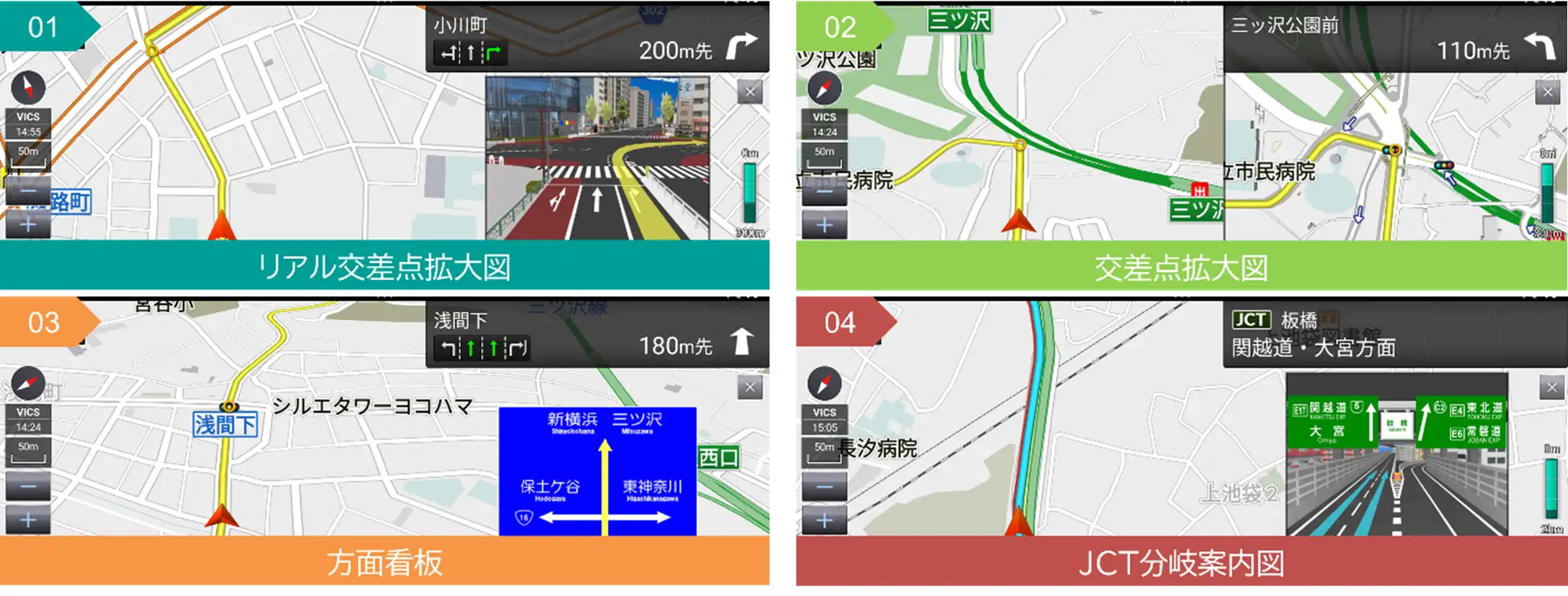 ゼンリン独自の車両調査等で取得した交差点・看板情報をもとに、分かりやすく丁寧な案内を実現 |