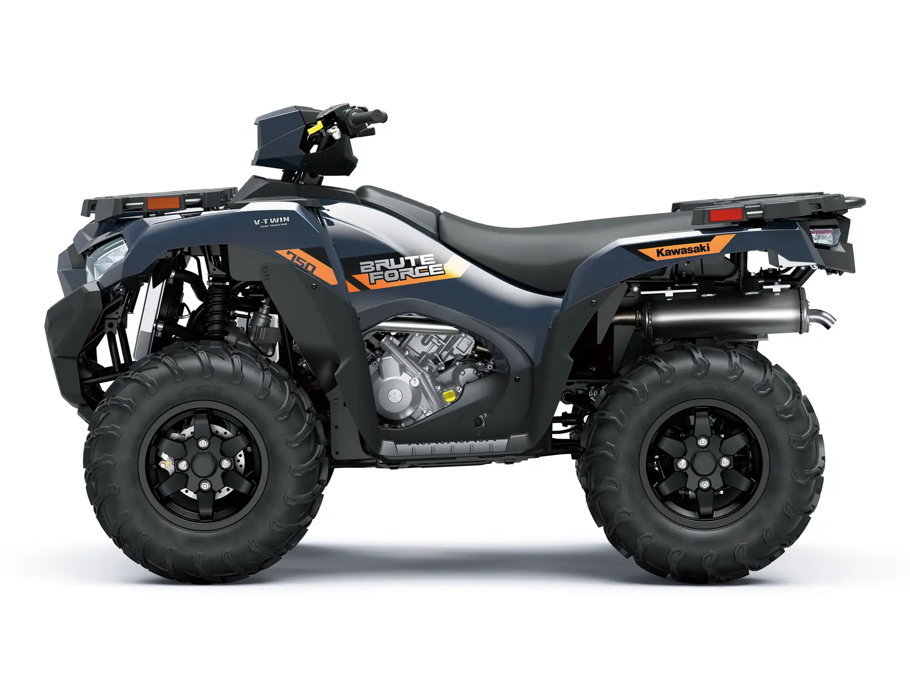 BRUTE FORCE 750は、レスポンスに優れたパワーデリバリーを発揮する高性能749cm³ Vツインエンジンを搭載。電動パワーステアリング(EPS)によるハンドリング性能や乗り心地を両立しています。タフで耐久性のあるシャーシに、「タフ&ラギッド」スタイリングを合わせることで、カワサキATVのフラッグシップらしい堂々とした威風を備えています。