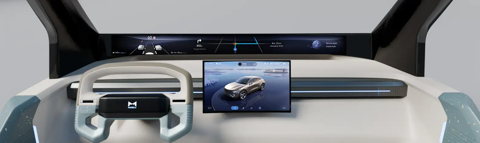 このコックピット体験は、マレリのゾーン型電気・電子(E/E)アーキテクチャによって支えられています。知能を集約し、ワイヤ・ハーネスを簡素化するこのアプローチは、ECU(電子制御ユニット)の数を減らし、システム・コストを下げ、開発を迅速化します。