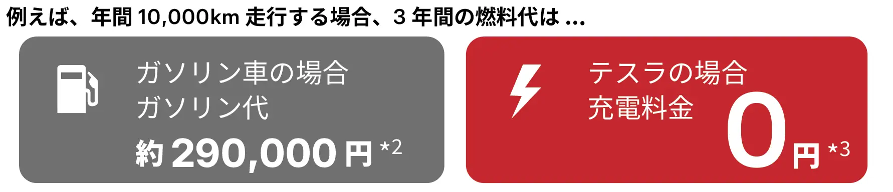 購入特典:テスラ スーパーチャージャーを利用した充電料金が3年間無料*1