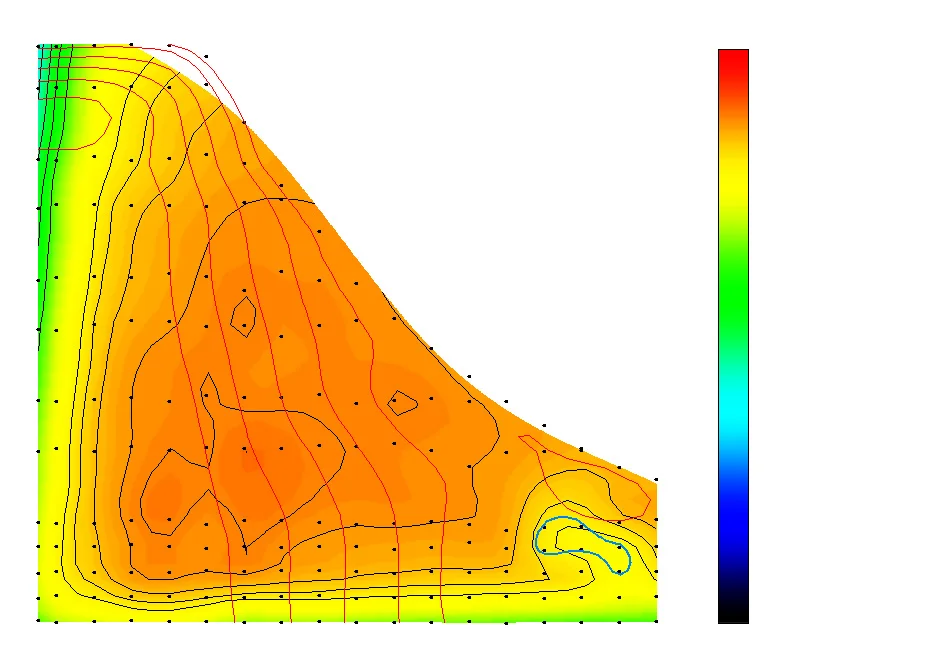 車両の速度と負荷を変化させ、車両への投入エネルギーと駆動軸の出力を測定した。そして、トラクションモーターの回転速度とトルクを軸に、パワーユニット効率マップを作成。